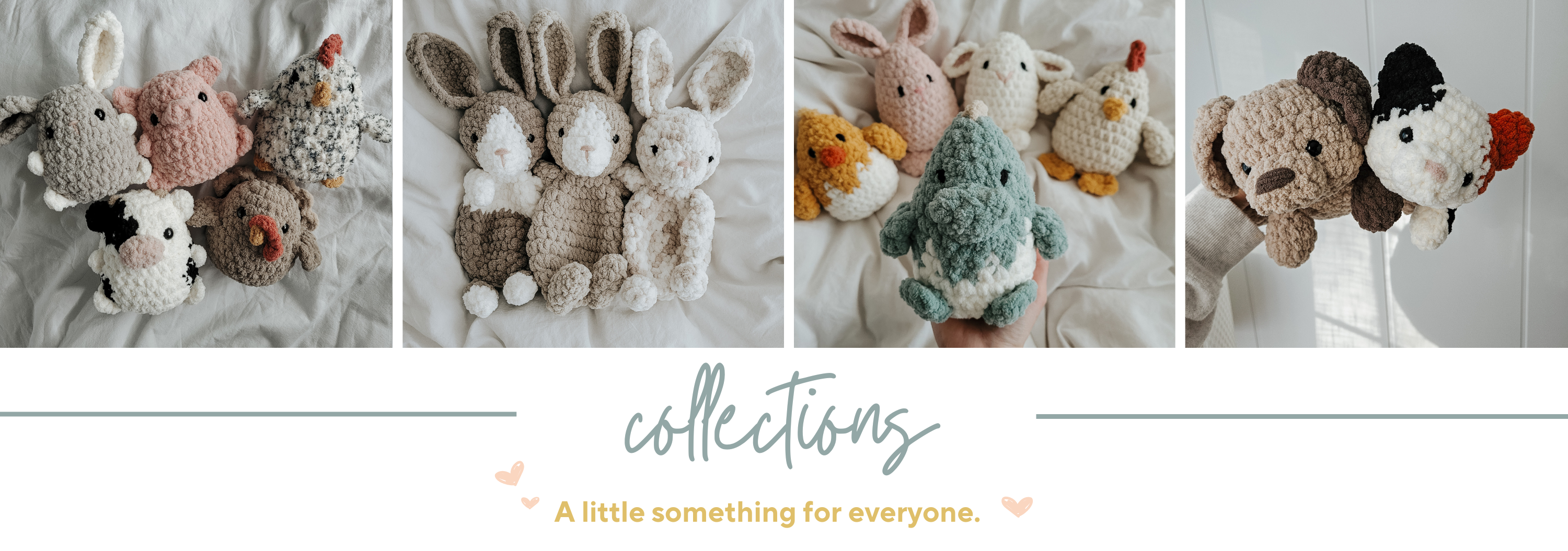 Crochet patterns designed to lay on their bellies, squishy, stackable, and stuffie...