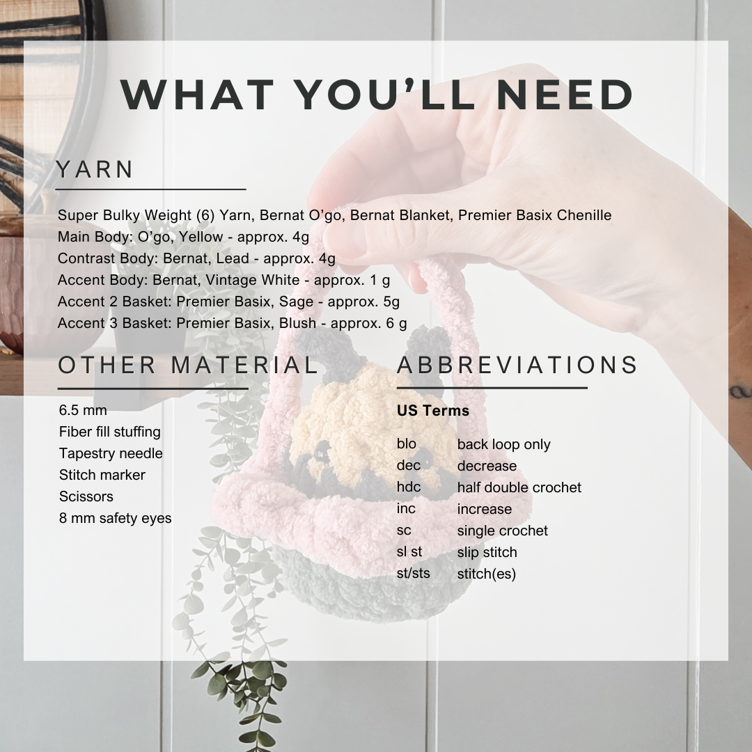 • PDF crochet pattern for the baby bee and flower basket – instant download