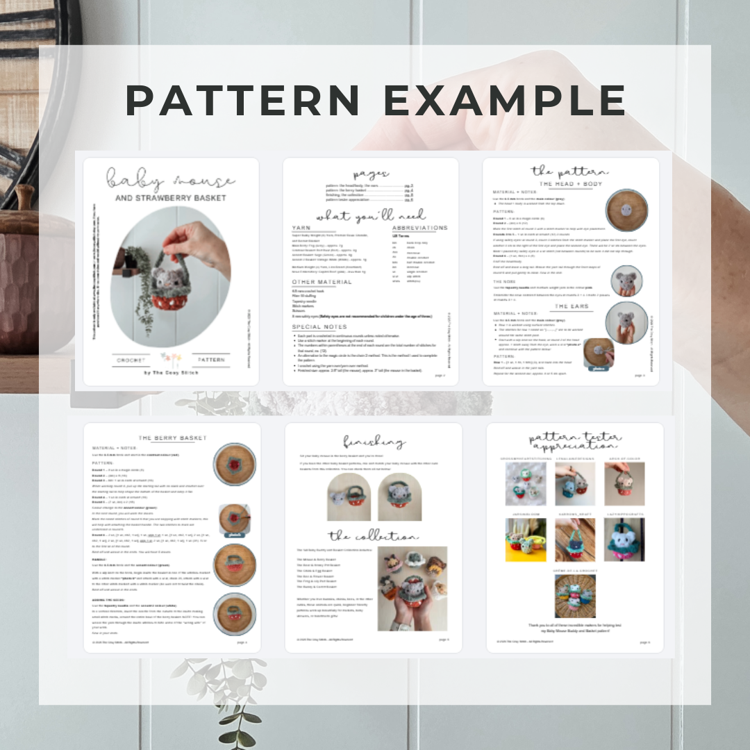 This baby mouse pattern is part of my baby buddy collection which also includes: a bear and a honey pot basket, a frog and a lily pad basket, a bunny and a carrot basket, a bee and a flower basket, and a chick and an egg basket. You can bundle the whole collection and save.