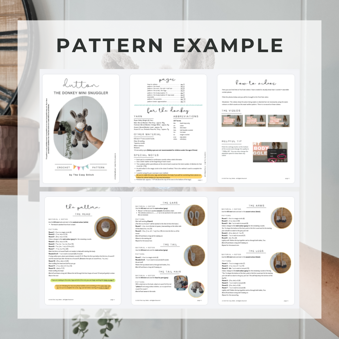 • PDF crochet pattern for the donkey mini snuggler including the crochet poncho– instant download