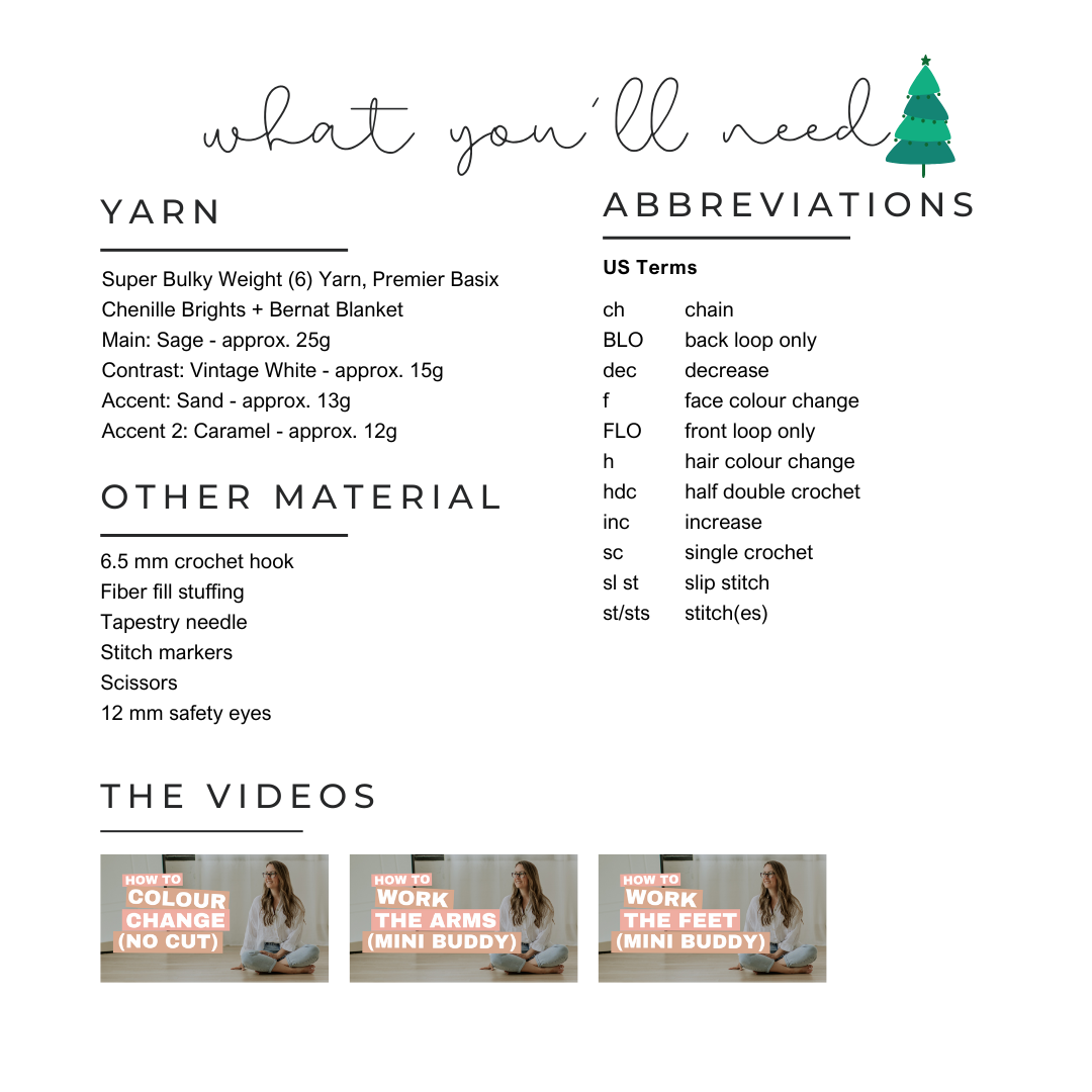 -- Included in the instant download is pattern instructions (written in ENGLISH, US terminology) on how to make your own Elf Chubby MINI Buddy.
