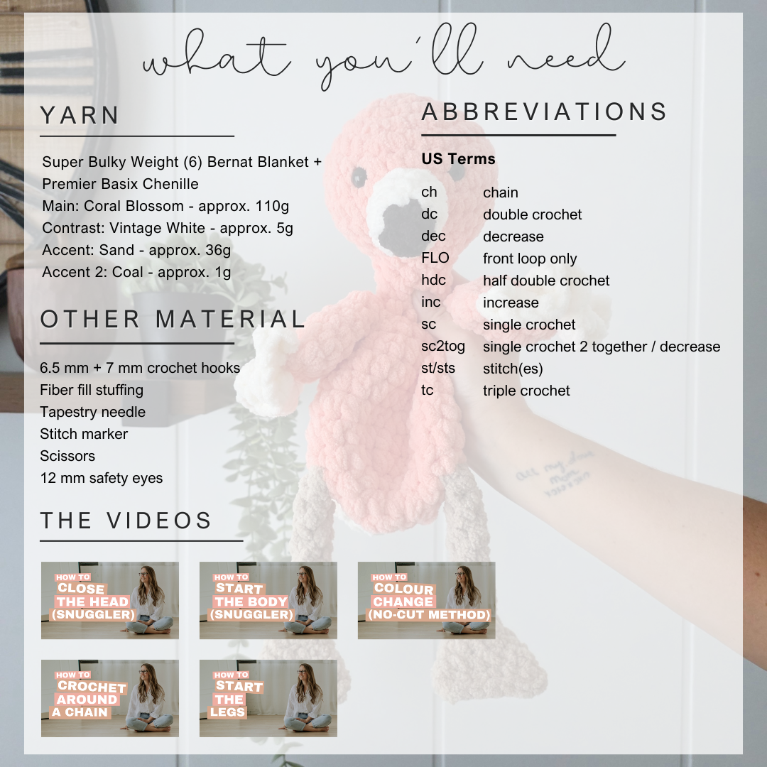 This listing is for a PDF PATTERN ONLY for the updated pattern for Flora the Flamingo snuggler/lovey. This is NOT A FINISHED PRODUCT OR PHYSICAL ITEM.