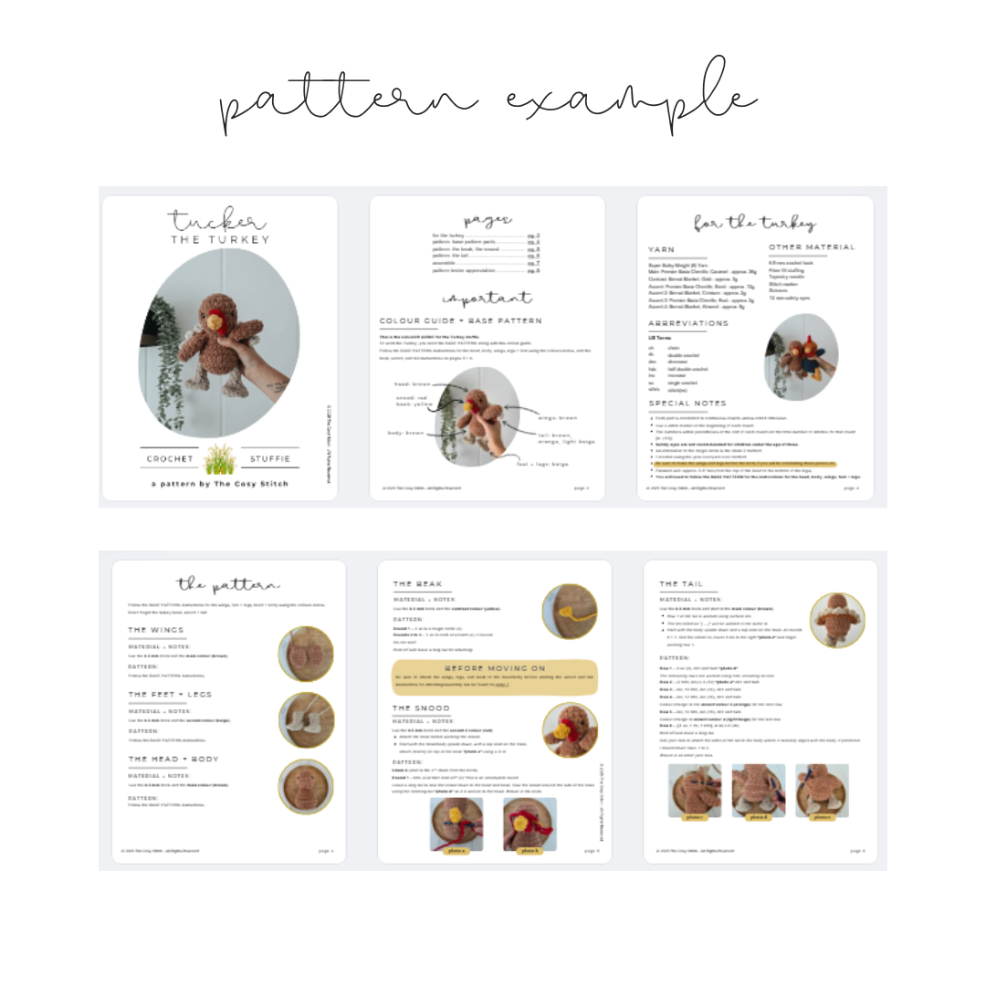 -- Included in the instant download is pattern instructions for the Turkey's beak, snood, and tail + a COLOUR GUIDE for the Turkey stuffie.